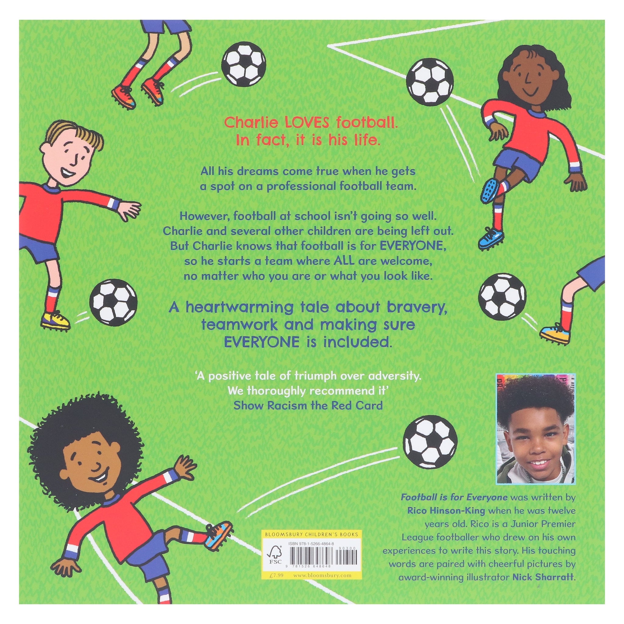 An empowering and authentic football story by Junior Premier League footballer Rico Hinson-King, illustrated by the beloved Nick Sharratt about bravery, teamwork and making sure EVERYONE is included.