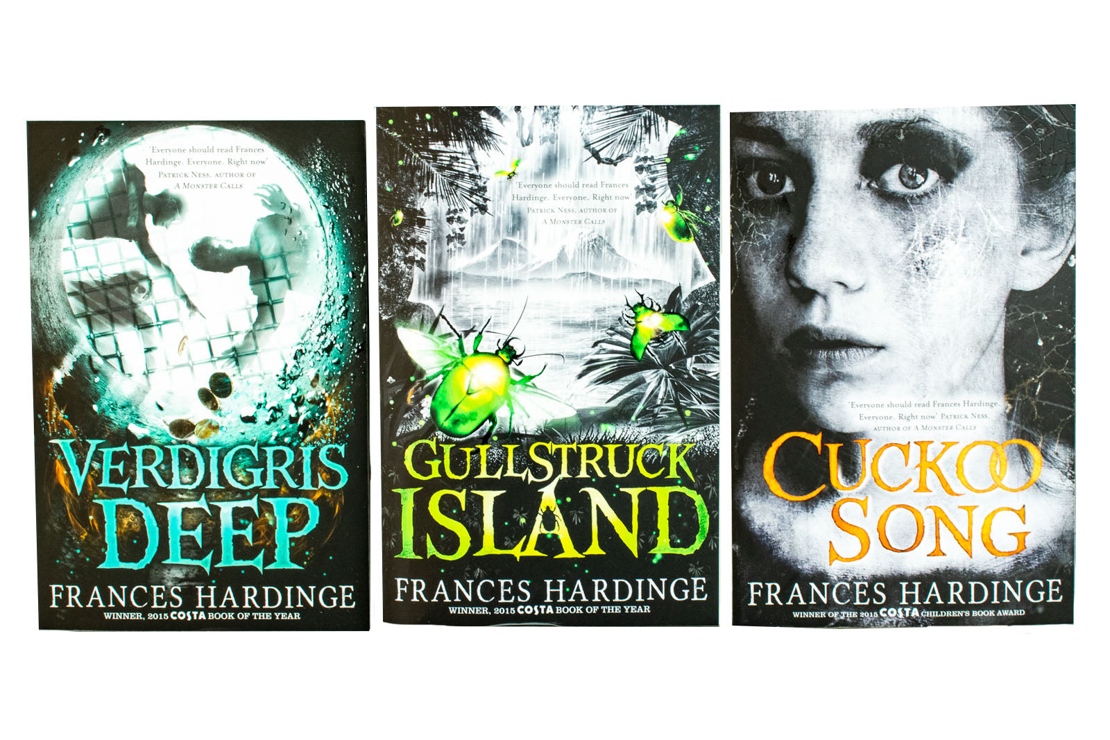 Everyone should read Frances Hardinge. Everyone. Right now.' Patrick Ness Verdigris n. a blue-green rust that tarnishes ageing and forgotten copper coins, altering them entirely . One evening, Ryan and his friends steal some coins from a well. Soon after, strange things begin to happen. Peculiar marks burn on Ryan's knuckles and light bulbs mysteriously explode. Then the well witch appears, with her fountains for eyes and gargled demands. From now on the children must serve her - and the wishes rotting at the bottom of her wel