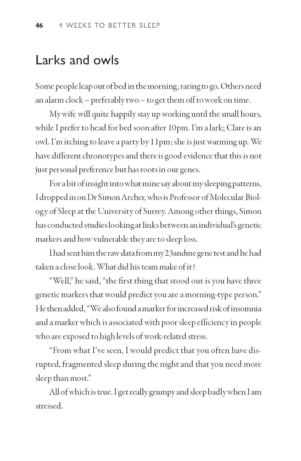 This fully revised and updated edition features an expanded four-week plan and bonus material on brain health, mood, immunity and metabolism. 4 Weeks to Better Sleep (previously Fast Sleep) is packed with the latest scientific research and even more guidance to help you improve your sleep for good.