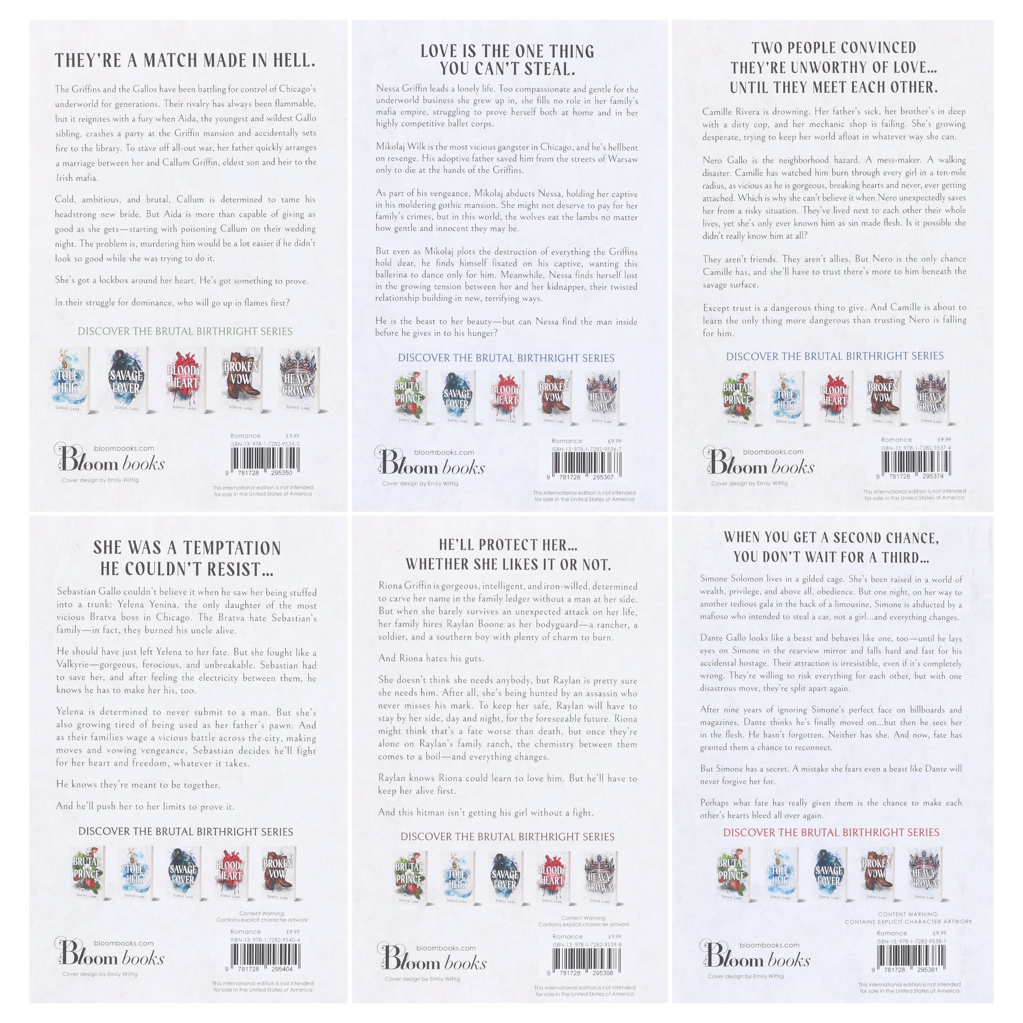 The Griffins and the Gallos have been battling for control of Chicago's underworld for generations. Their rivalry has always been flammable, but it reignites with a fury when Aida, the youngest and wildest Gallo sibling, crashes a party at the Griffin mansion and accidentally sets fire to the library. To stave off all-out war, her father quickly arranges a marriage between her and Callum Griffin, eldest son and heir to the Irish mafia.