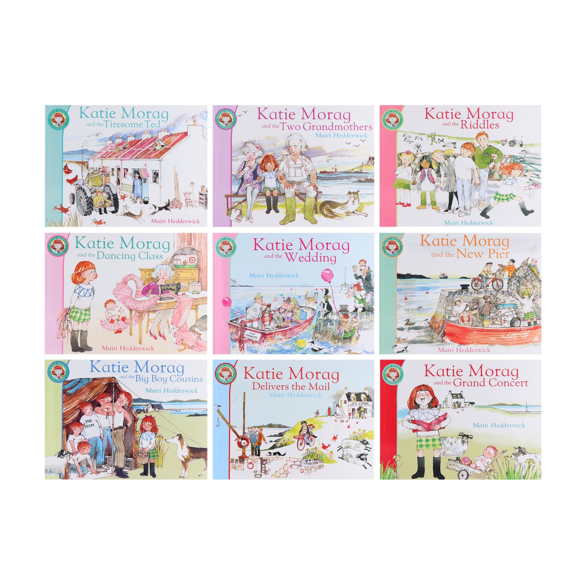 Embark on a delightful adventure to the Isle of Struay with the beloved Katie Morag book series by Mairi Hedderwick. This charming collection invites readers of all ages to join the spirited and imaginative Katie Morag as she navigates the joys and challenges of island life. With nine captivating titles, including Katie Morag and the Dancing Class, Katie Morag and the Tiresome Ted, Katie Morag and the Wedding, Katie Morag and the Riddles, Katie Morag and the Two Grandmothers, Katie Morag and the Grand Concert, Katie Morag and the Big Boy Cousins, Katie Morag Delivers the Mail , and Katie Morag and the New Pier , this book set promises endless hours of enchantment and laughter.