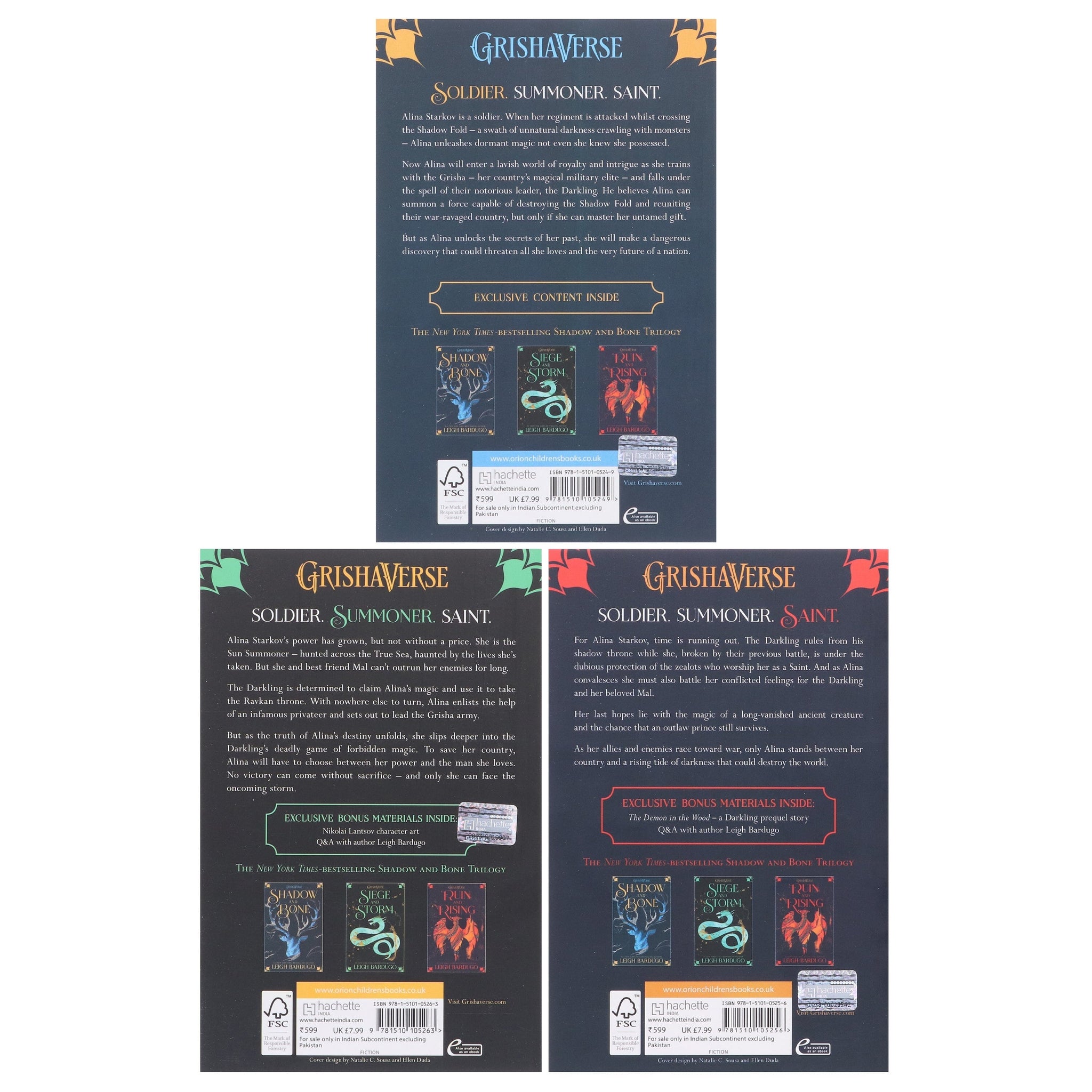 Soldier. Summoner. Saint. Alina Starkov's power has grown, but not without a price. She is the Sun Summoner - hunted across the True Sea, haunted by the lives she took on the Shadow Fold. But she and Mal can't outrun their enemies for long.The Darkling is more determined than ever to claim Alina's magic and use it to take the Ravkan throne. With nowhere else to turn, Alina enlists the help of an infamous privateer and sets out to lead the Grisha army.