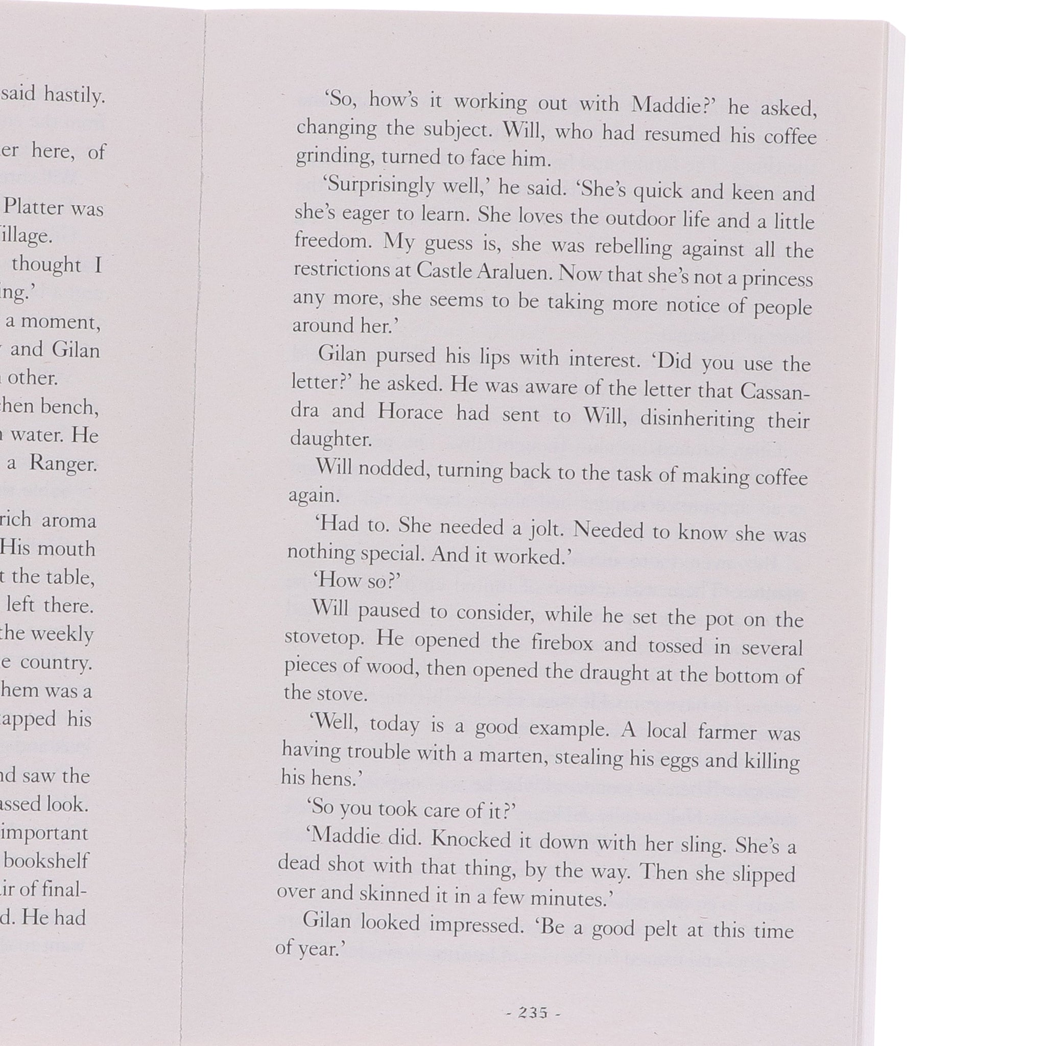 Will took an oath when he joined the Ranger Corps. Does it mean nothing to him now. After a senseless tragedy destroys his life, Will is obsessed with punishing those responsible even if it means leaving the Ranger Corps. His worried friends must find a way to stop him taking such a dark path. It is Halt who suggests the solution: Will must take an apprentice. The candidate Halt has in mind will surprise everyone and it will be a request Will cannot refuse. Training a rebellious, unwilling apprentice is hard enough. But when a routine mission uncovers a shocking web of crime, Will must decide where his priorities lie finishing his quest for revenge, or saving innocent lives?
